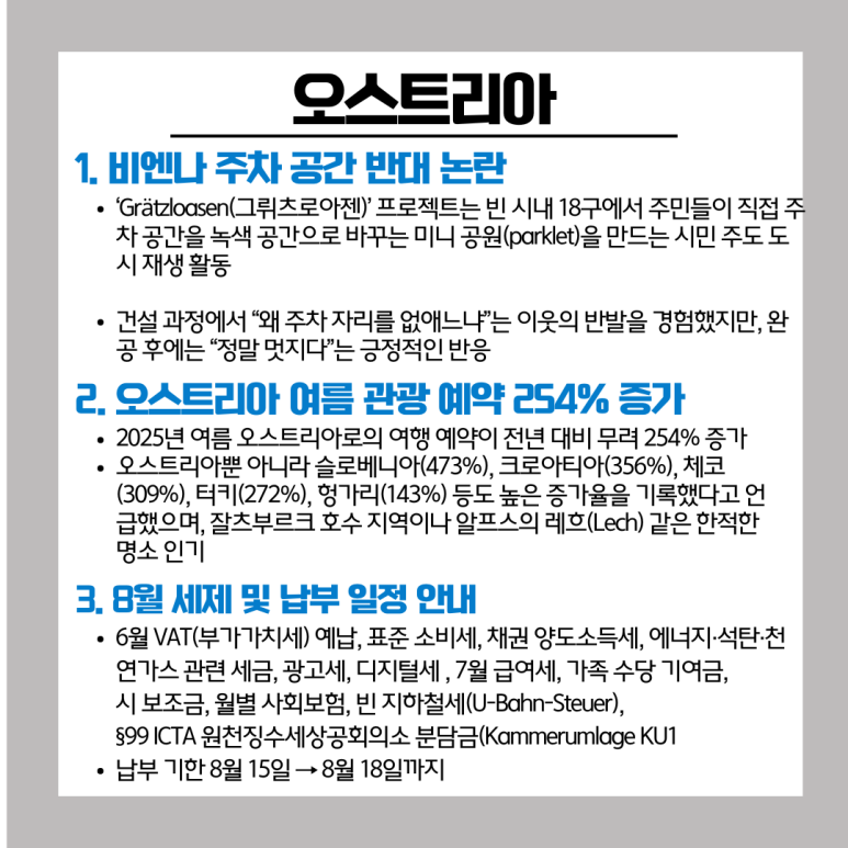 | [8월 3주차 독일·오스트리아 뉴스] 오스트리아 빈 우편국 – 미국 향 소포 서비스 중단 (1) | 2025.08.25 |