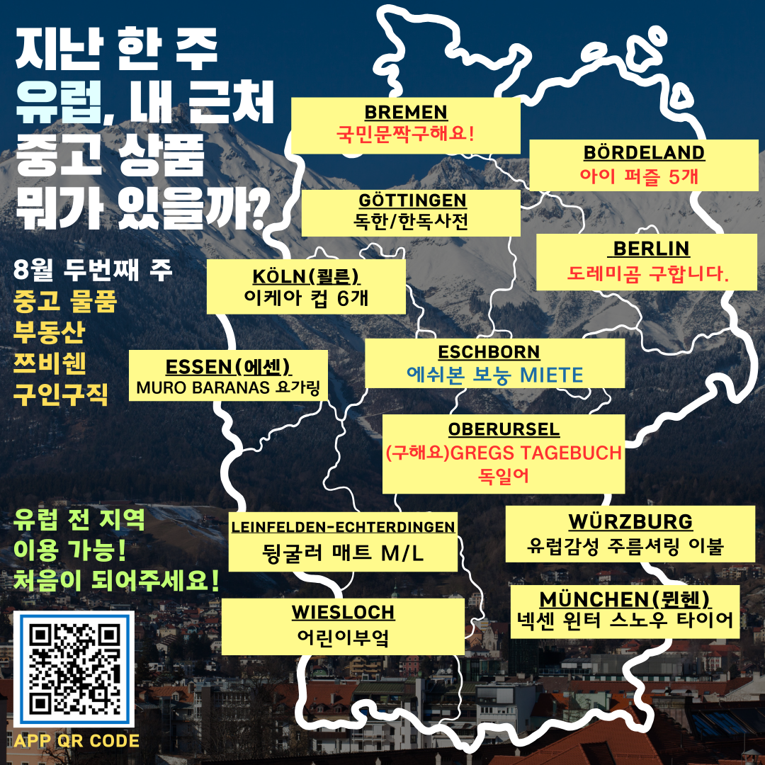 이제 독일,오스트리아를 넘어 유럽 전체 지역에서 간편하게 중고거래 !