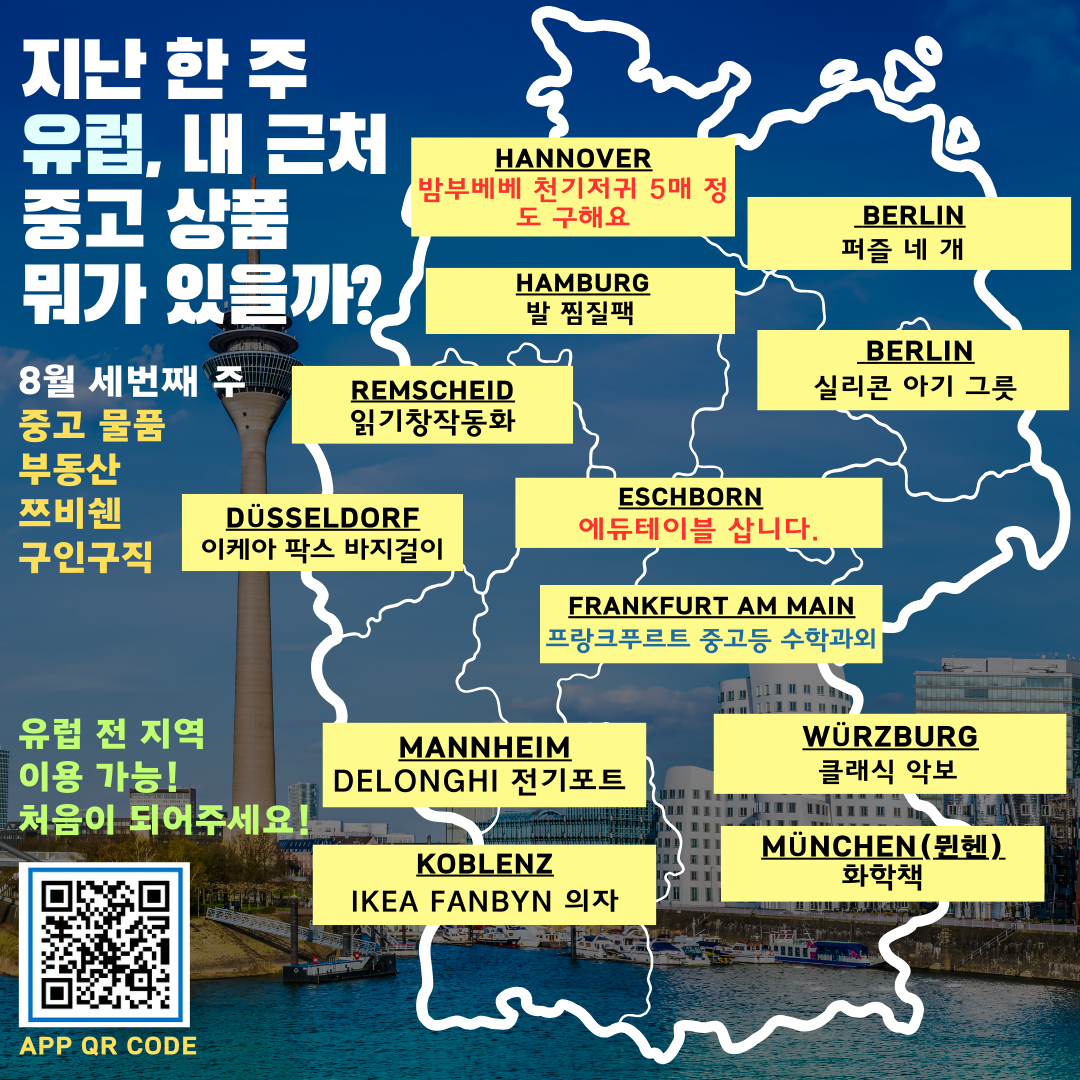이제 독일,오스트리아를 넘어 유럽 전체 지역에서 간편하게 중고거래 !