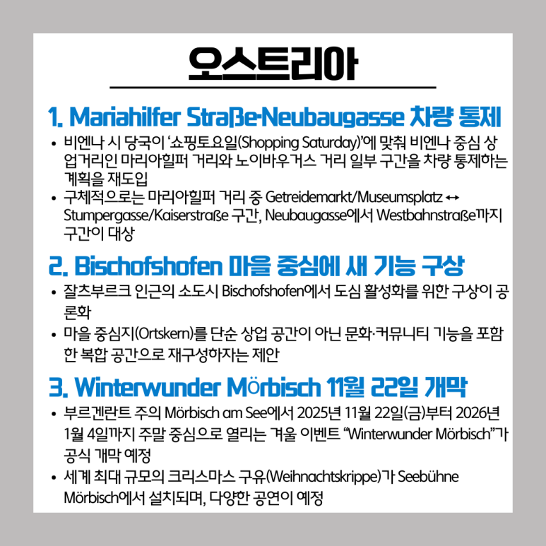 1) 비엔나 쇼핑토요일 ‘차량 통제’ 재도입